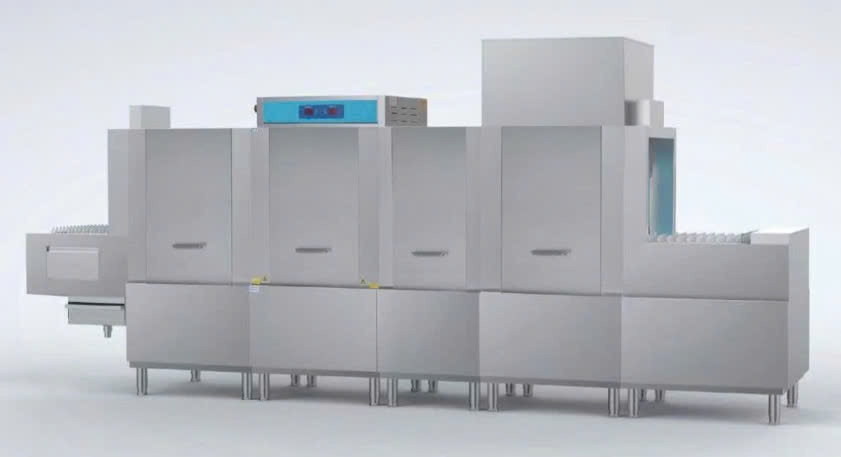 Công suất lớn: Đáp ứng khối lượng rửa từ 3.500 – 6.000 khay/giờ, phù hợp với những khu bếp có tần suất sử dụng cao.